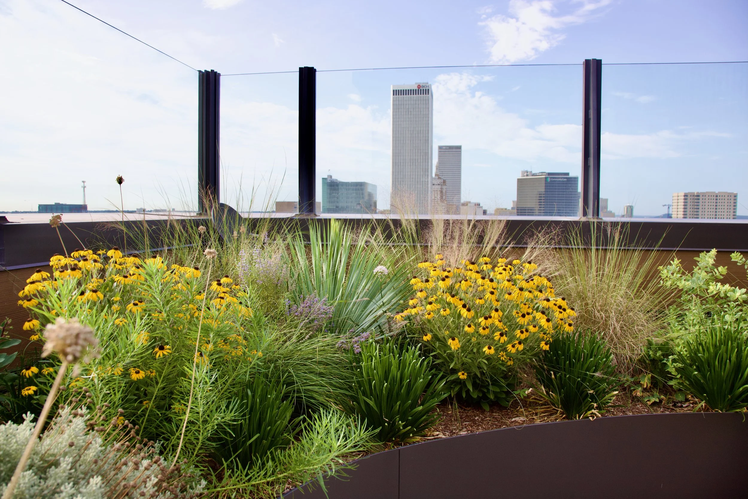 The Davenport Lofts is a luxury apartment building situated in the heart of the Tulsa Arts District, just south of the historic Cain’s Ballroom. In 2023, I was asked to create a planting design for the existing raised beds on the tenth floor rooftop terrace, Club Ten. This would be a common space for the residents of Davenport Lofts to enjoy year-round. I directed the installation in Fall 2023, with planting assistance from the residents of Davenport Lofts as a community-building event.